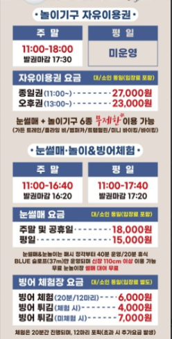 단점: 입장료가 다른 눈썰매장에 비해 높은 편이며, 사람이 많을 경우 대기 시간이 발생할 수 있습니다.