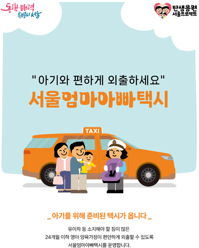 서울시에서 진행하고 있는 서울엄마아빠택시에 대해 아시나요? 24개월 이하 영아 아이들을 키우고 있으면 지원받을 수 있고, 유모차나 갖고다녀야할 짐이 많은 경우 편안하게 외출할 수 있도록 서울시에서 서울엄마아빠택시를 운영하고 있습니다. 이번 포스팅에서는 해당 서울엄마아빠택시에 대한 지원금받는 방법을 포스팅 해보려고 하오니 24개월 영아를 가진 부모님들은 잘 읽어보시고 지원금 받아가세요!