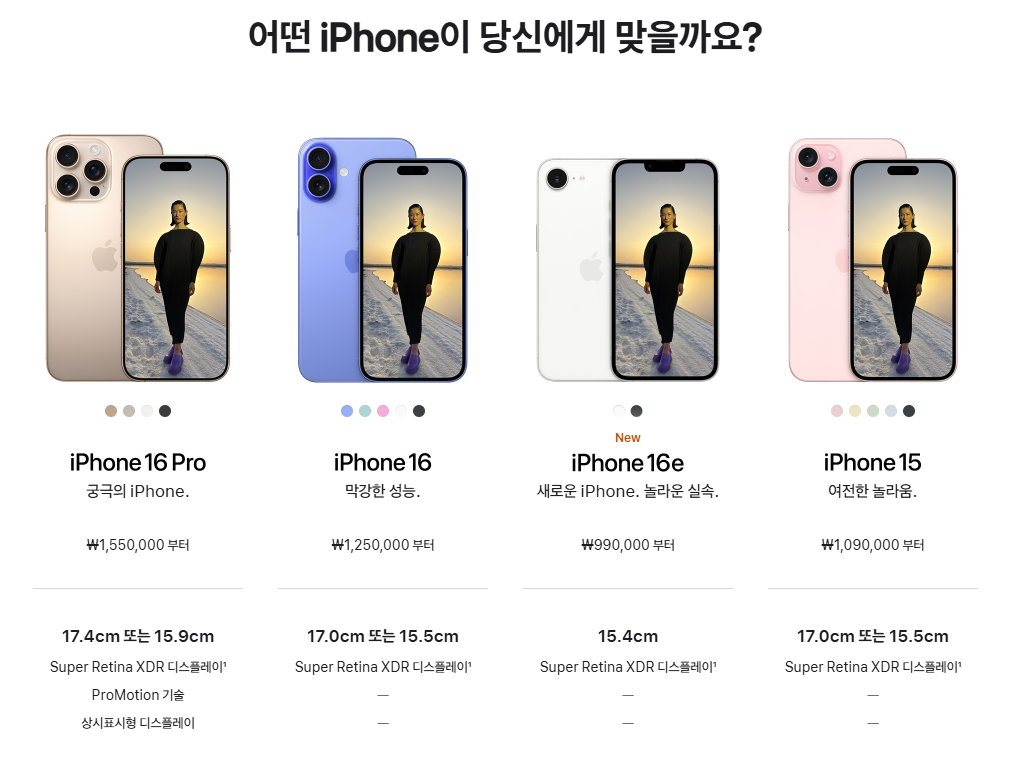 아이폰 16 Pro vs 아이폰 16 vs 아이폰 16e 스펙 비교