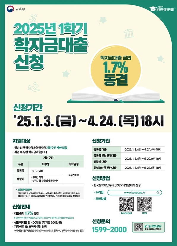 - 대상: 소득과 관계없이 만 55세 이하 학부생 및 대학원생