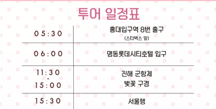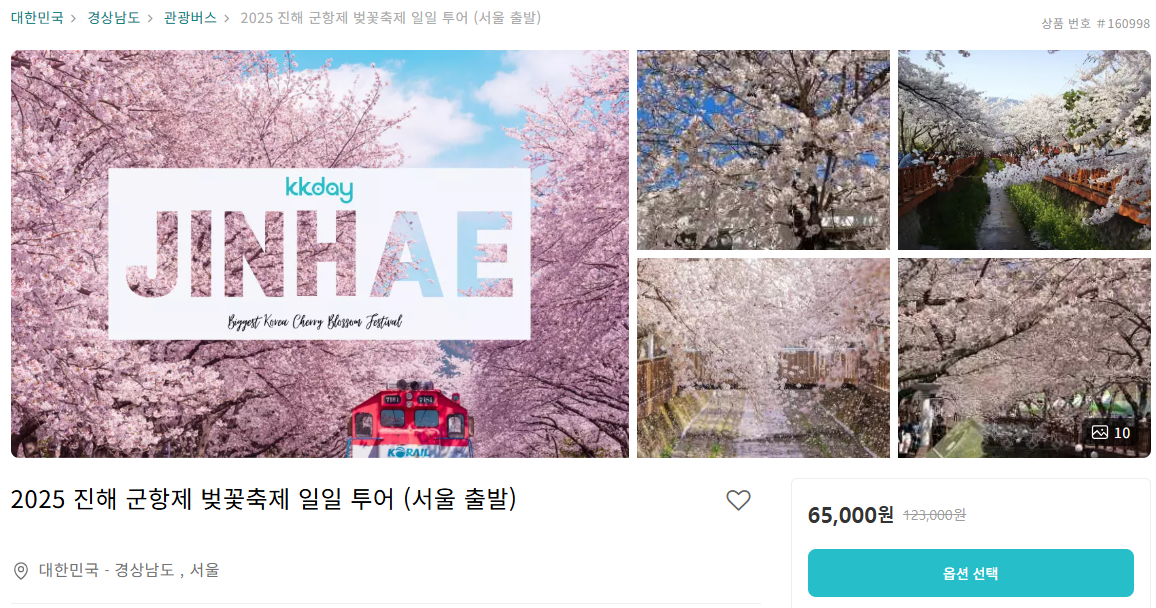 서울에서 진해까지 하기 사이트에서 일일투어도 진행하는데 선착순 10명 얼리버드 프로모션중이니