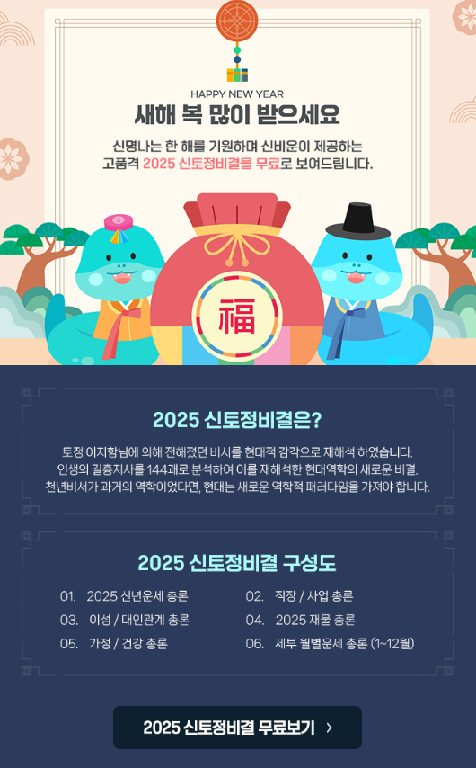 특징: 타로 카드, 사주풀이, 2025 신년운세 등을 직관적으로 확인할 수 있습니다.